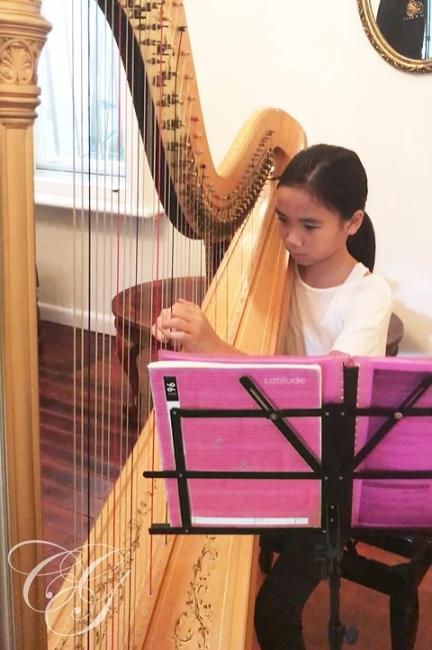 Individual tuition on the pedal or lever harp with Camille is located in the convenient inner city suburb of Stanmore, New South Wales. Camille is an orchestral harpist with the Sydney Contemporary Orchestra and can draw upon more than 20 years of teaching experience. Whether you wish to undertake AMEB/Trinity syllabus grades or simply learn for leisure, Camille can help you achieve your goal. You may begin learning the harp at any level from beginner to advanced and all ages are welcome.